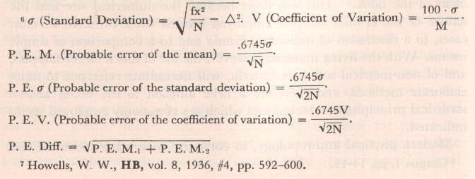 In the introduction to the study of the skeletal material, we made only the briefest mention of the statistical methods to be employed in that segment of the book.5 This was done because the numerical size and the nature of the cranial samples employed limited the treatment, in most cases, to a discussion of individual crania and to a comparison of simple means. With the living material however, the use of much larger samples, and of non-metrical soft part criteria, will necessitate reference to more elaborate methods, and therefore a brief allusion to the better known statistical principles and techniques which are commonly employed seems indicated.
