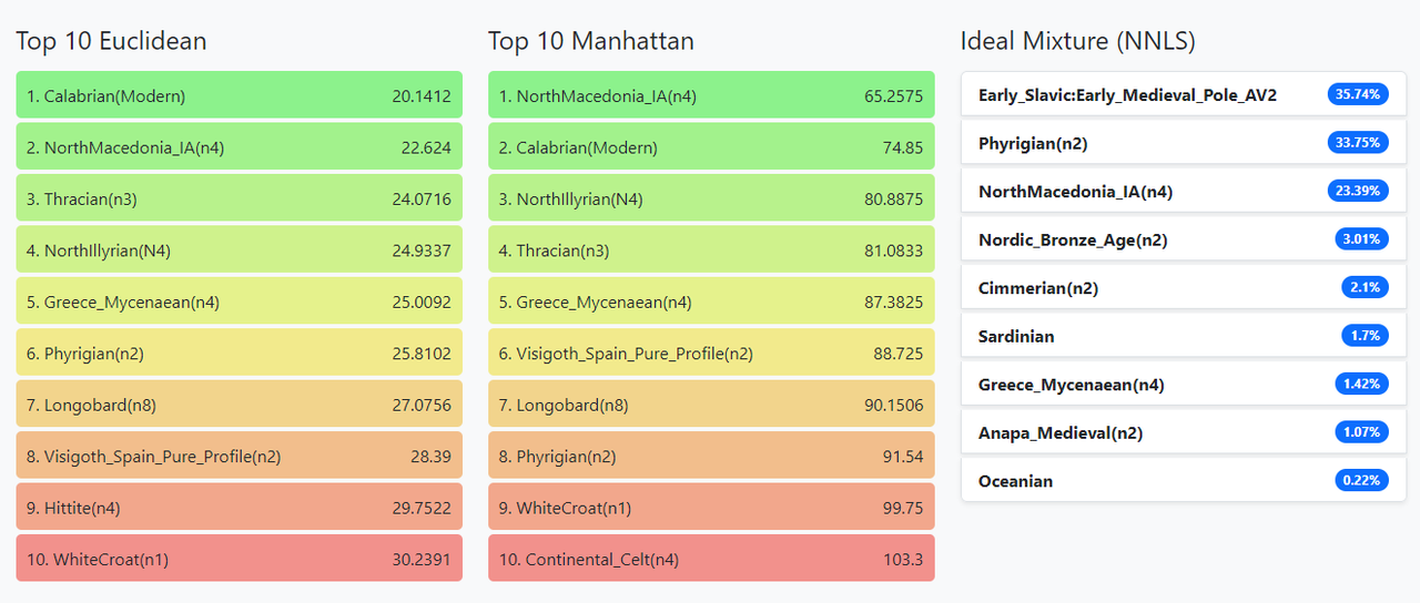 Since this is based on eurogenes k36, you will see mostly iron age, bronze age, and modern groups in your results, no neolithic stuff or prior