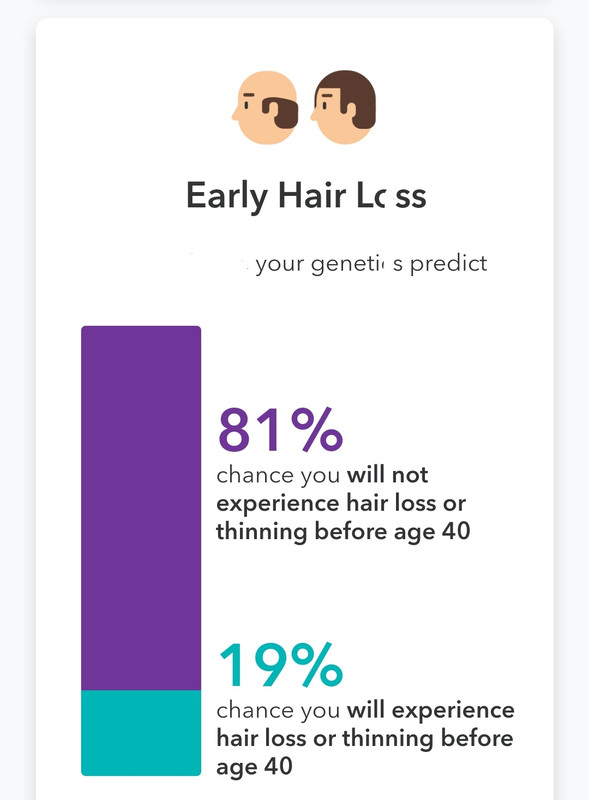 Un 92% es prácticamente estar seguro de q no te quedas calvo. Aunque es self-reported y a lo mejor la mitad de los q ponen ese resultado tienen 20-25 años y no les afecta, pero aun así, un 92% está claro que calvo no te vas a quedar. Faltará ver los que sí tienen calvicie y qué porcentaje les da, para ver si es fiable.