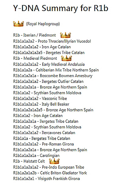 I imagine that the crown means that the remains found in these deposits should belong to members with some degree of royalty or power or simply that those haplogroups consider them real, I really don't know what it is based on.