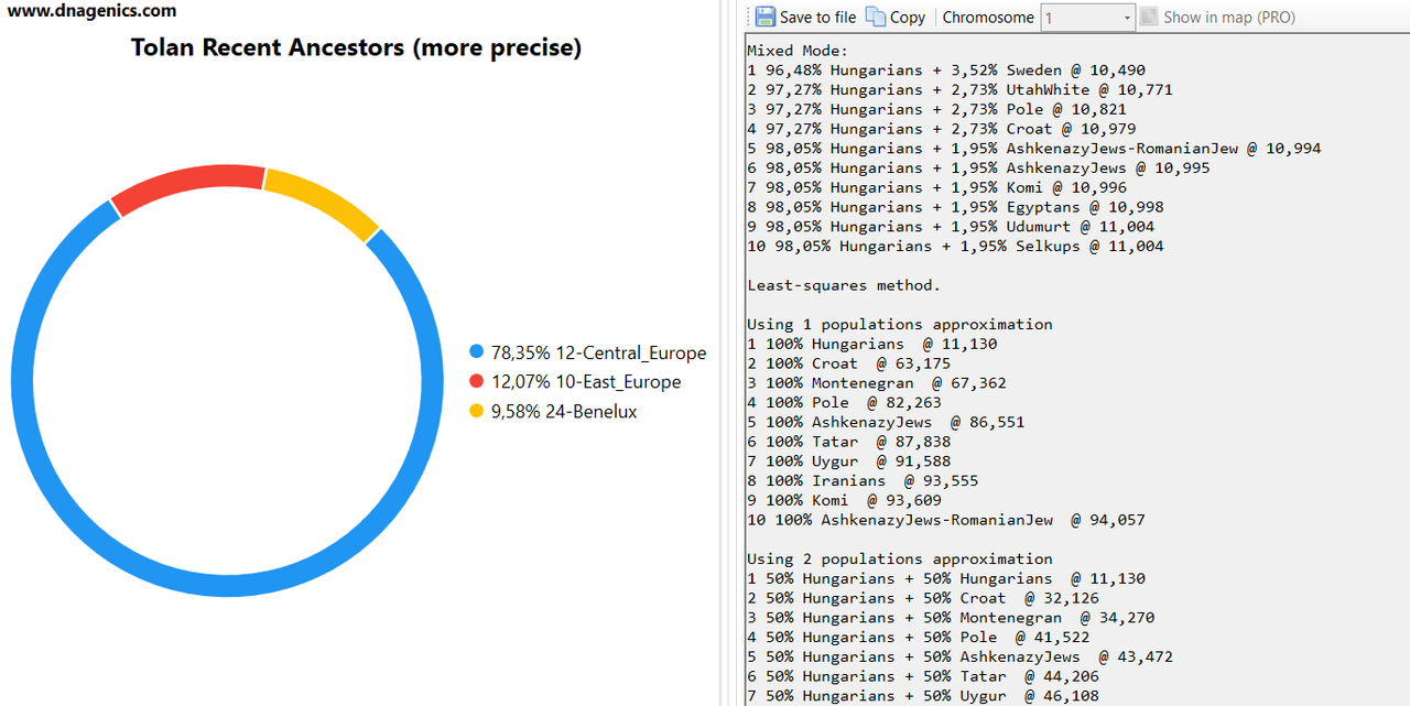 1 25% Tatar + 25% Tatar + 25% AshkenazyJews-RomanianJew + 25% French @ 49.490