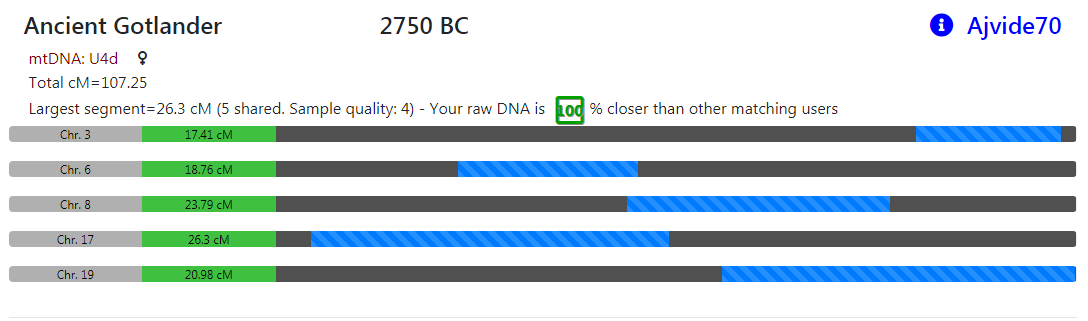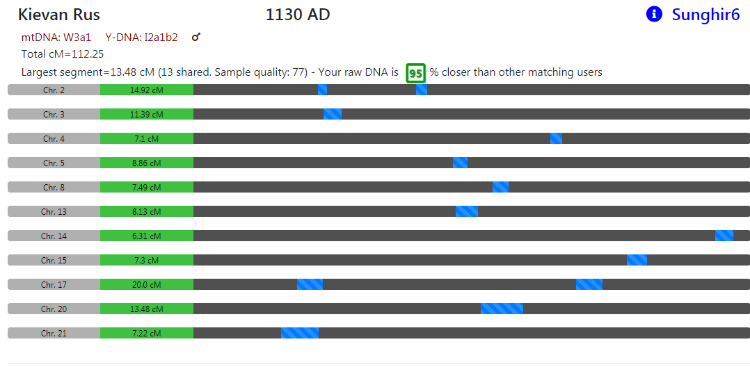 Largest segment=21.21 cM (14 shared. Sample quality: 77) - Your raw DNA is 99% closer than other matching users