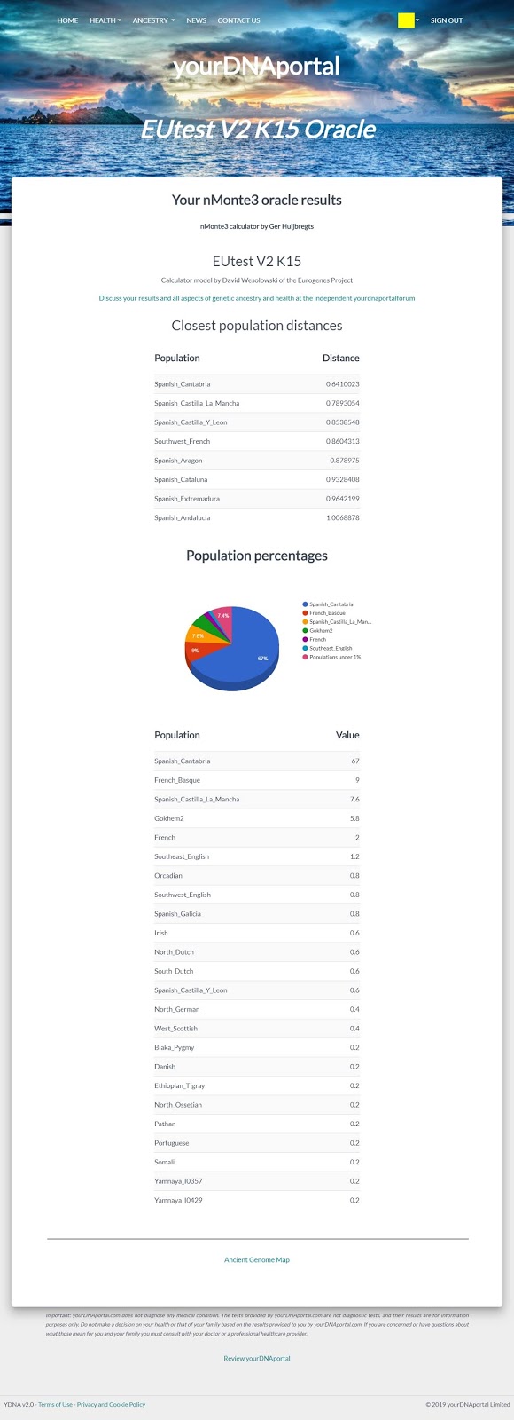 Lo veo bastante interesante la verdad. Yo te recomiendo una cosa, a lo de las distancias a poblaciones solas, no le hagas mucho caso, lo mejor que hay en este tipo de calculadoras son los ancestry breakdown, tu caso, muy interesante la verdad, aunque si es cierto que he visto resultados parecidos, no son comunes.