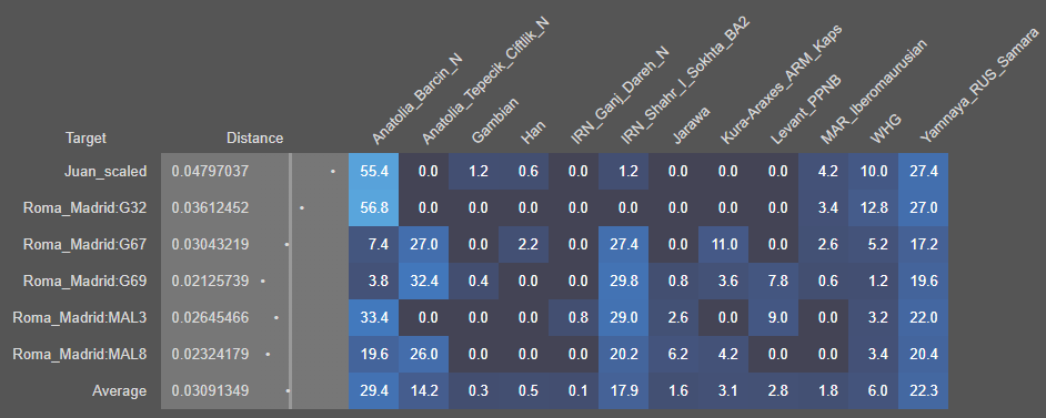 Como broma la muestra "gitana" G32 es menos gitano que yo, lol. Y tiene más WHG, Anatolia y menos africano, joder parece un discípulo de Cristiano Viejo.