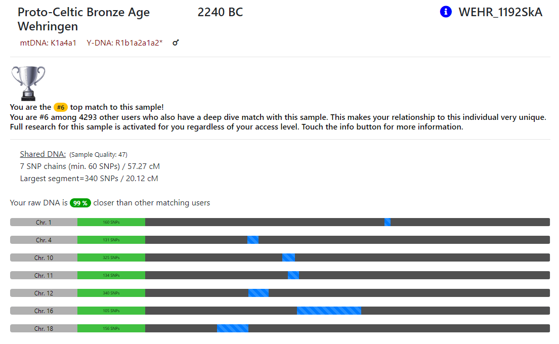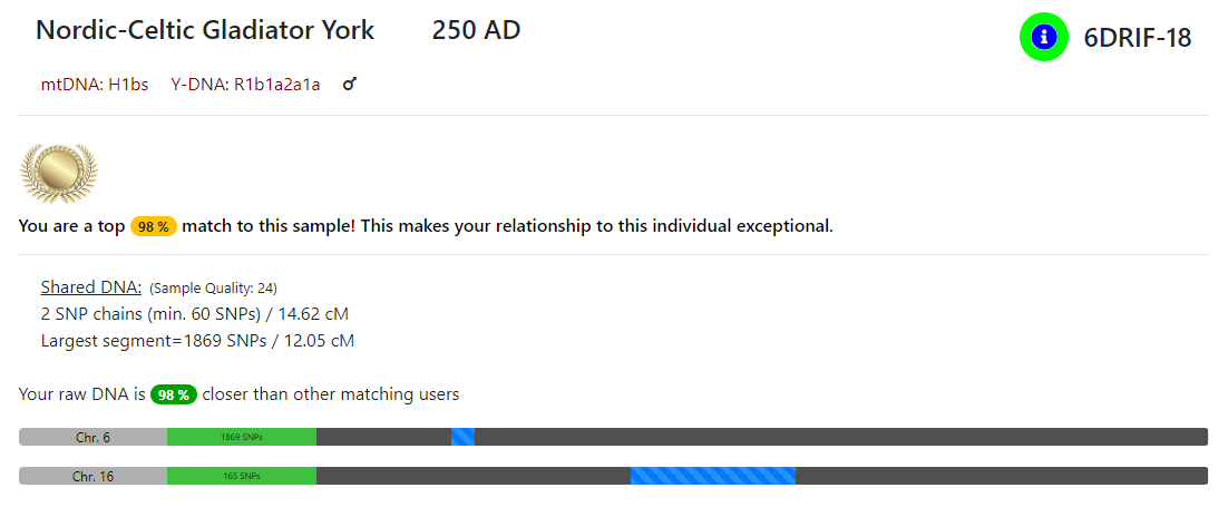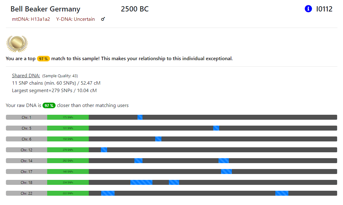 You are a top 98 % match to this sample! This makes your relationship to this individual exceptional.