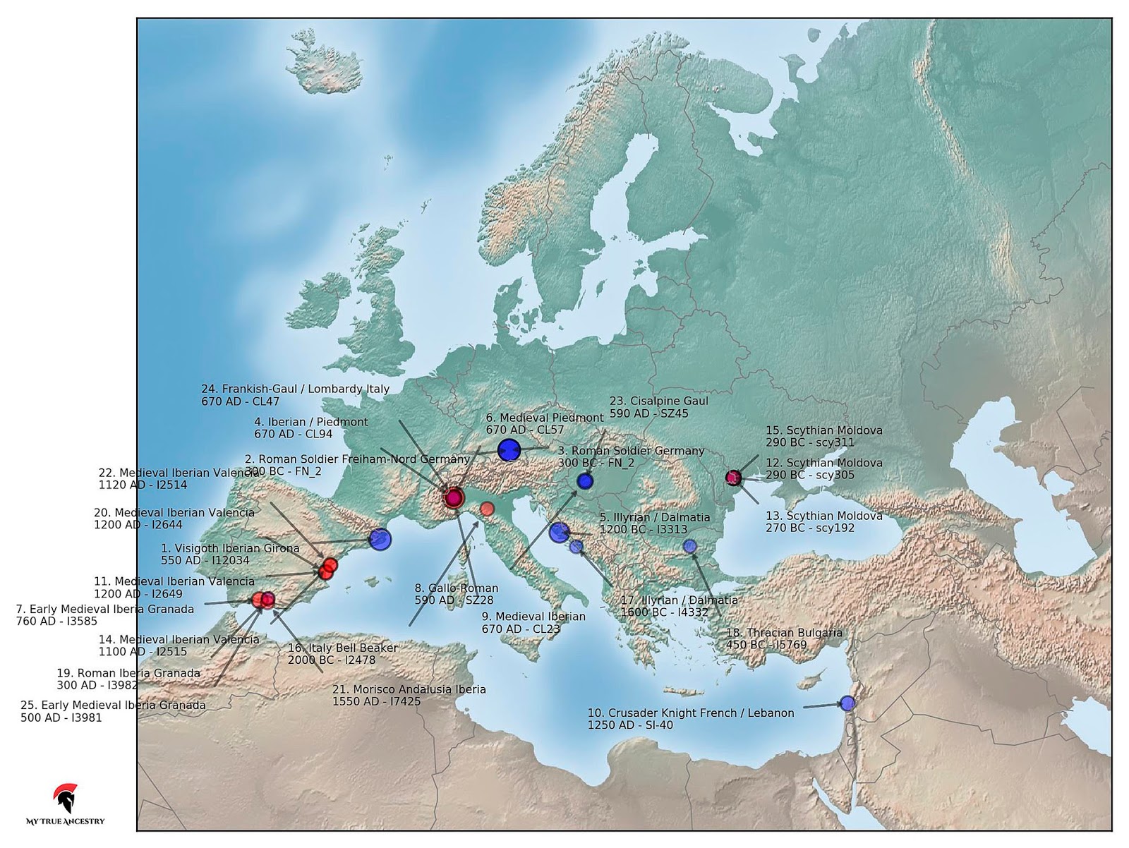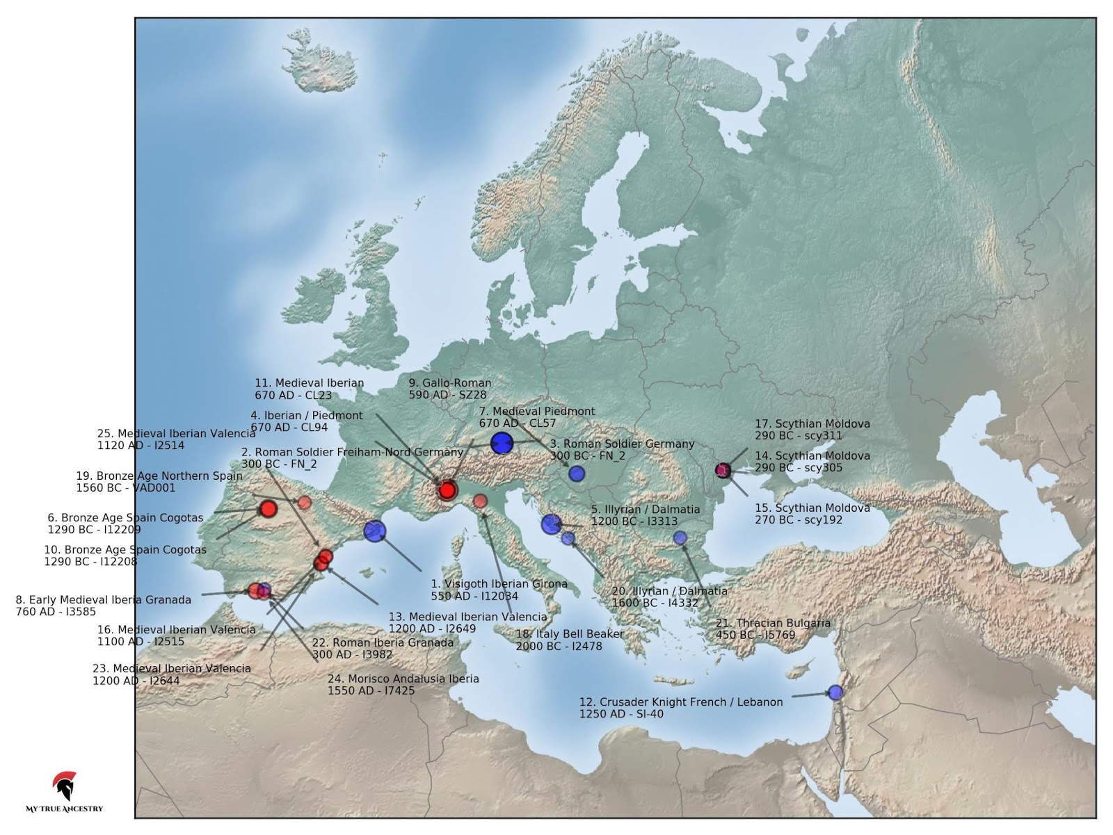 Your closest Archaeogenetic matches...