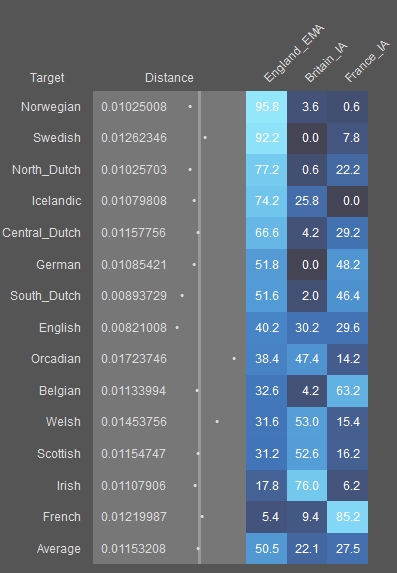 Great to finally have the paper as a reference, although basically just confirming what we'd seen in the previews. The question of Norse/Danish influence vs Anglo-Saxon still remains vague, and I still can't get my head around the France IA influence, when and where exactly most of it came to England. From how evenly it's spread over the bulk of England, parallel with Anglo-Saxon ancestry, you would think it came early-ish, mostly alongside Anglo-Saxons as part of the Frankish influence the paper mentions, but then it's not seen in the early medieval sites outside Southern England below the Thames. However that is possibly just a sampling issue, since Frankish objects are found in good numbers in the Midlands, East Anglia, and East Yorkshire. I personally don't believe the majority of France IA ancestry in English came after 1066 with Normans, although no doubt a significant percentage of it did. 40+% French in East Anglia coming with Normans is just not credible IMO, there is no historical or other evidence that it was a hotspot of Norman/French migration in the later Middle Ages, let alone having such a drastic population replacement.