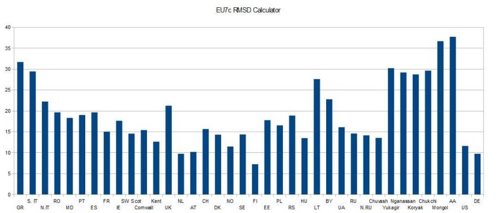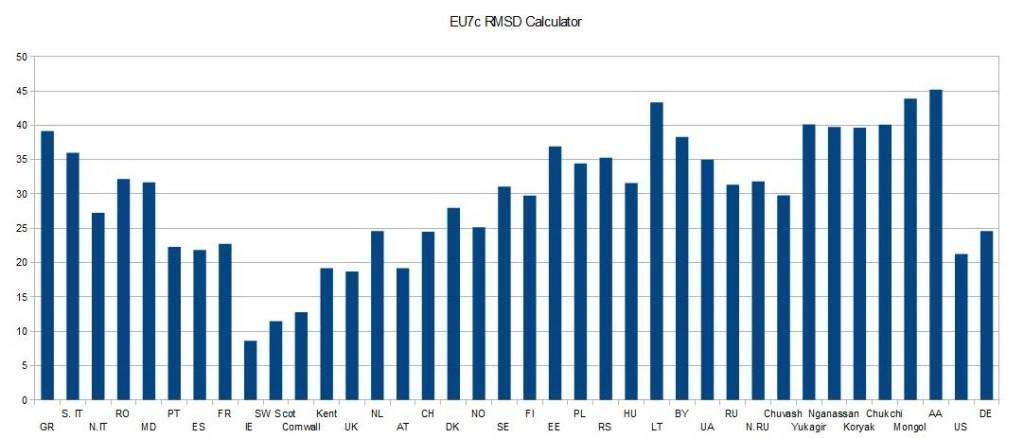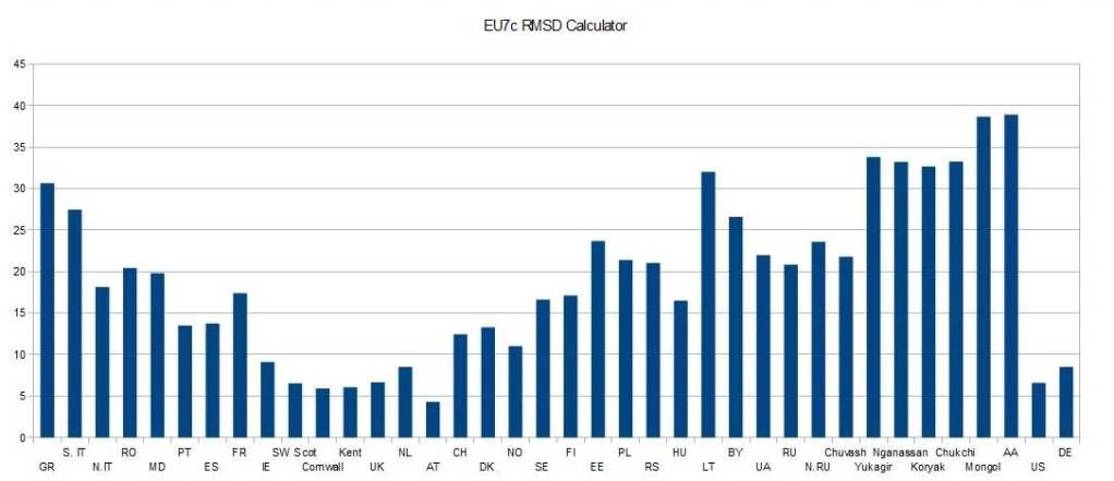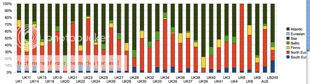 Thanks AM, but I'm a wee bit confused with some of these. For example, it places me closer to Austria (?), Spain, Portugal, US, France and the Netherlands before it does UK or Norway? My western European element was quite high before (about 30%), I'm wondering if these results are a reflection of this? Also, the Austrian thing makes me think it's a Celtic connection.