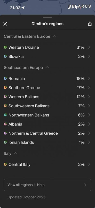 Aunt's English went from zero to 12%. Her Denmark from 14% to 2%.
