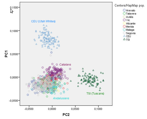 Here you have more, all have the same pattern, spaniards clustering between French and north-italians and pulling towards Basques :