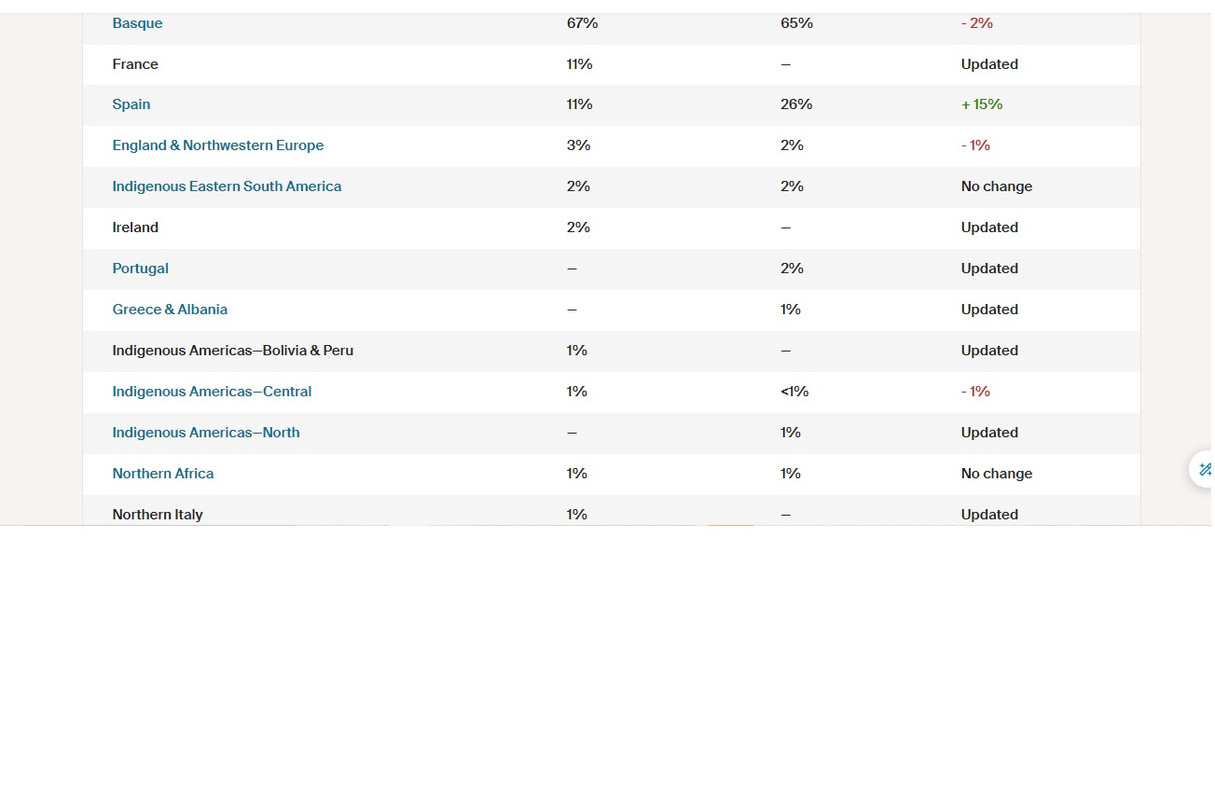 The only doubt I have is they removed completely "France", and I am sure I have roots in Aquitaine, but may be they consider them in the "basque spectrum", who knows...