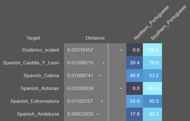 Y he vuelto a hacer lo que hice esta mañana y sale lo mismo:Code:Northern_Portuguese,0.10534944,0.14397967,0.03796356,-0.00337356,0.04151213,-0.00247900,-0.00603178,0.00102544,0.02636089,0.02907678,0.00180422,0.00702711,-0.01192589,-0.01503156,0.00930433,0.00590756,0.00599767,-0.00249156,-0.00685767,0.00122278,-0.00083200,-0.00498722,0.00314978,-0.00021422,-0.00027922