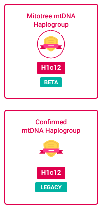 Results of data transferred from MH on the left, and data from 23andMe on the right.