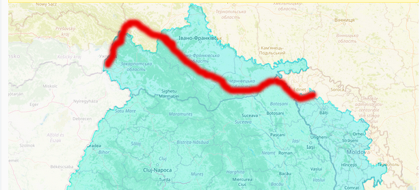 I think real border should follow the Carpathians (Lemkos, Hutzuls, Zakarpatian Rusyns), but as LivingDNa on this map is using administrative borders is too northern than in reality.