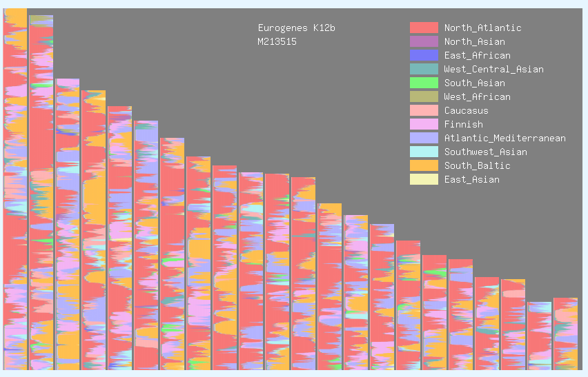 The East Asian does appear in your Eurogenes tests. Strange that Dr. Mcdonald did not pick up any East Asian segments in his chromosome painting. Although I imagine it could have been on one of the segments that were "unreadable" in his calculator.
