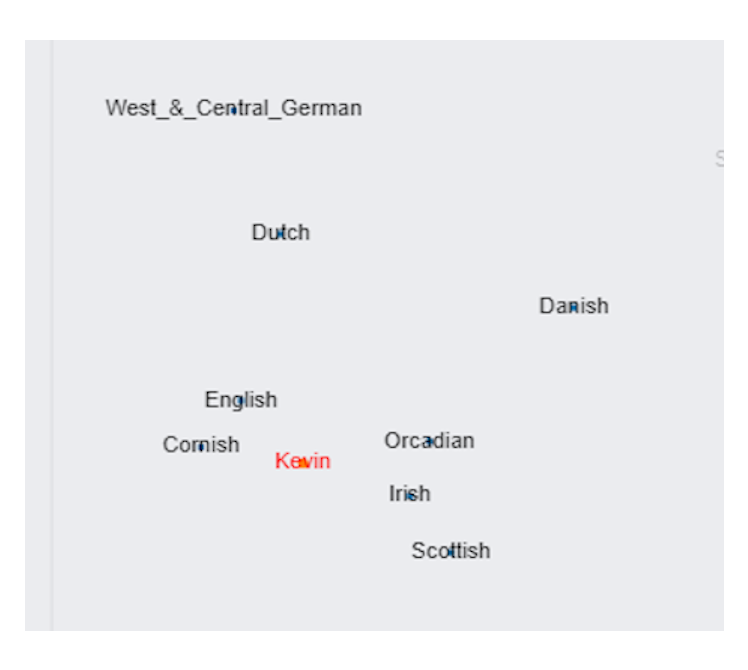 The English sample is probably SouthEast English and Orcadian is Celtic with a heavy dose of Norwegian viking. This probably puts me anywhere from the Liverpool to NorthCumbria region I would guess or perhaps the very southWest of Cornwall. It is hard to tell without more British samples so I am a bit disorientated with this all, anyway, it is clear I am extremely British isles regardless :