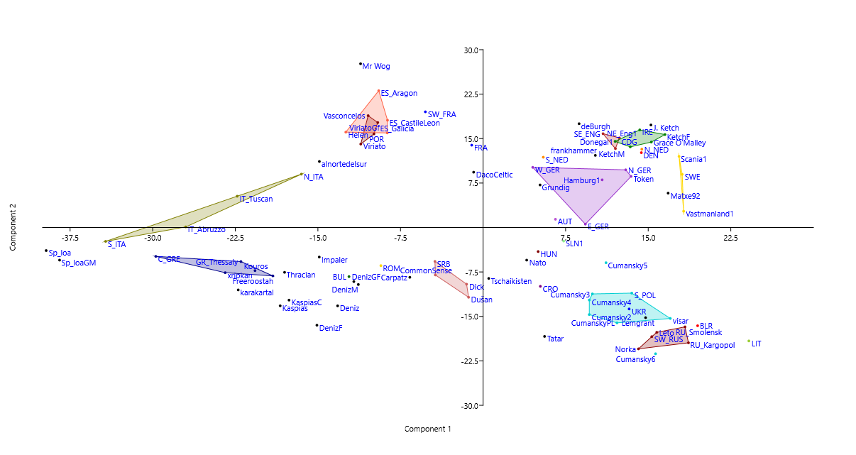 It is PCA made on K25 components of standard admixture calculator, not smartPCA on dataset with genomes.
