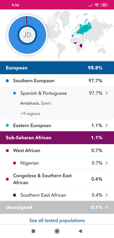 O 23andMe tem uma nova actualização mas os meus resultados ainda não foram actualizados (testei com o chip V4). Deixo aqui por agora os resultados da minha esposa e do meu pai, os quais fizeram a prova com a versão mais recente: