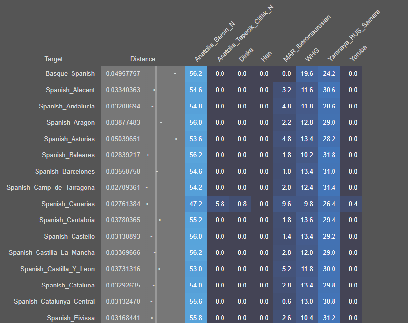 Te pongo en situacion, yo soy 3/4 iberico (en un 70% gallego aprox.) mas 1/4 italiano (en un 80% siciliano del este aprox.), entonces ahi entenderas el porque tengo mas estepa que el promedio, pero menos WHG. Se que los italianos sacan mas estepa y los españoles mas WHG, aunque sacamos lo mismo en Farmer, somos famiglia.