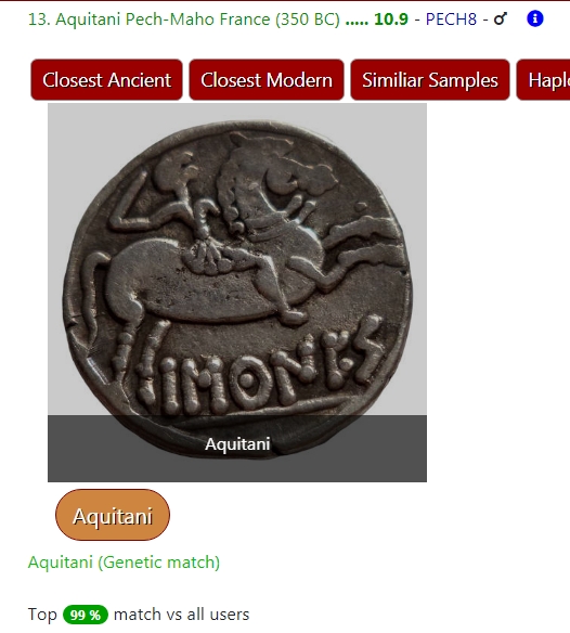 Dark ages: Roman 30.8%, Gallo-Roman 22.5%, Frank 14.6% , Visigoth 9.2%, Gaul 5.8%, Illyrian 5.7%, Vascones 5.4%, Roman Hispania 4.4%, Iberian 0.8%, Boii 0.4%, Carthaginian 0.2%