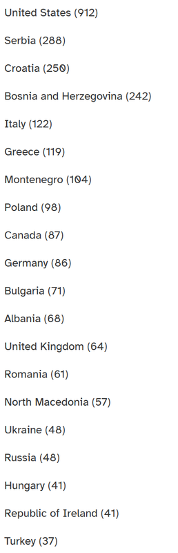 Top 10 Countries With DNA Matches (MyHeritage)