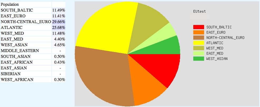 Here are my mother's results. Be interesting to compare with you guys here. She is of 100% Irish/British Isles ancestry as far as we know. Her ancestry comes from various parts of the Isles.
