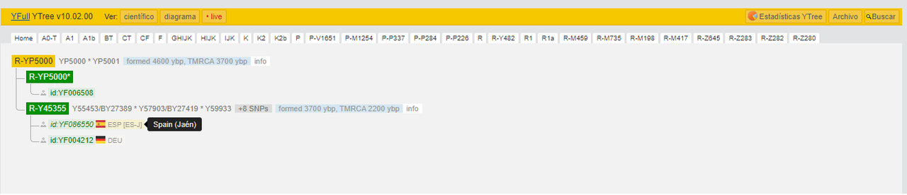 ¿A qué te refieres con eso de "no estás"? ¿Al grupo de Ydna ibérico o a estar en Yfull? En Yfull estoy, y mi sample viene como que es de Jaén, sí, porque hasta donde yo sé, mi Ydna viene de ahí.