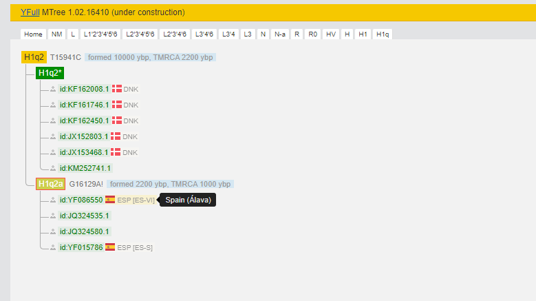 Ya tengo los resultados del Full mtdna de FTDNA, me han dado (no sé si por ahora o no van a ir más allá) H1q2.