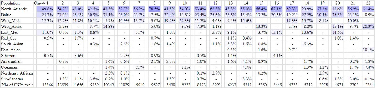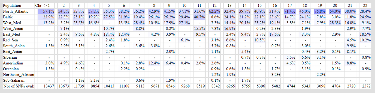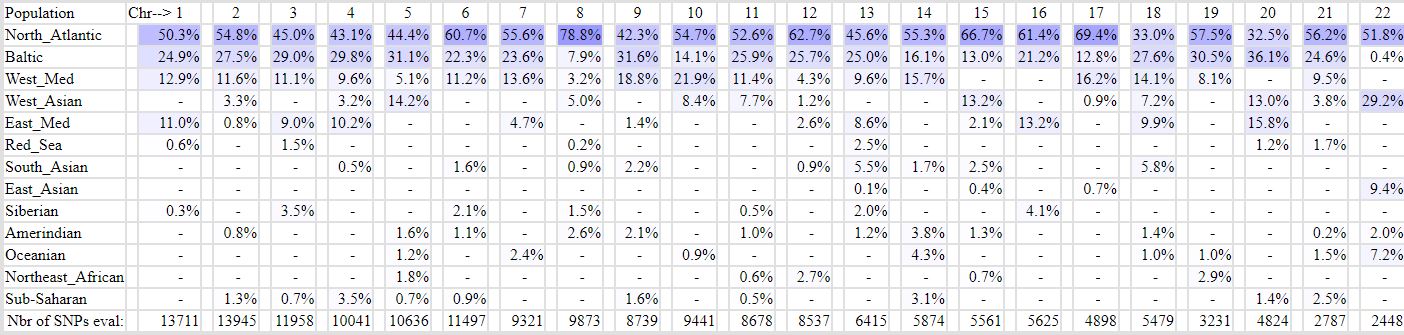 First, this GEDmatch function has shown to not sum up to your whole genome (kit) result, if you try to add the results, also, when taking into account the different weights (sizes) of the chromosomes. (I reported this bug years ago to GEDmatch before the purchase by Verogen and they wanted to check that but there never happened anything.) Second, the possibilities to score various components are not evenly distributed among the chromosomes. There are no references for what a Dutch f. i. scores on chromosome 22. And comparing what someone scores on chromosome 22 with what someone scores on the whole genome (kit) is like comparing an apple with a potatoe.