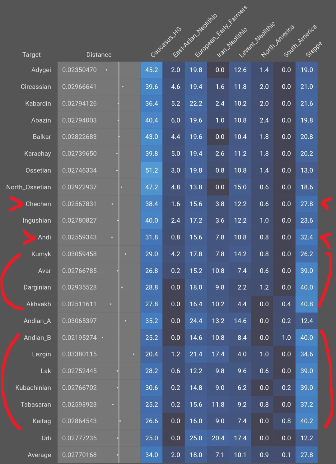 Interesting. Northeast Caucasians have also Gedrosia admixture which is present in Iran and India, due to J2a haplogroup? They do also have an impressive amount of Northern European component.