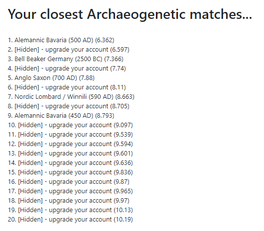 Your closest Archaeogenetic matches: