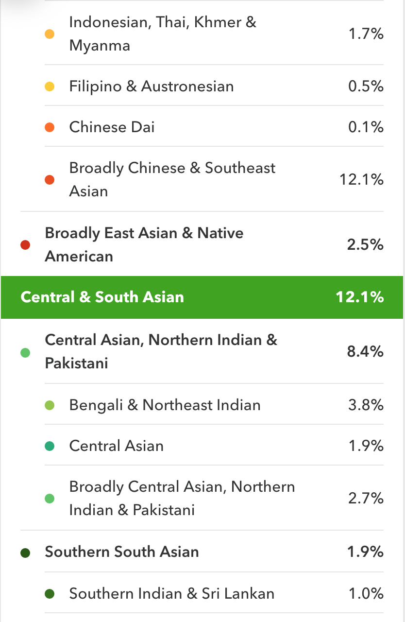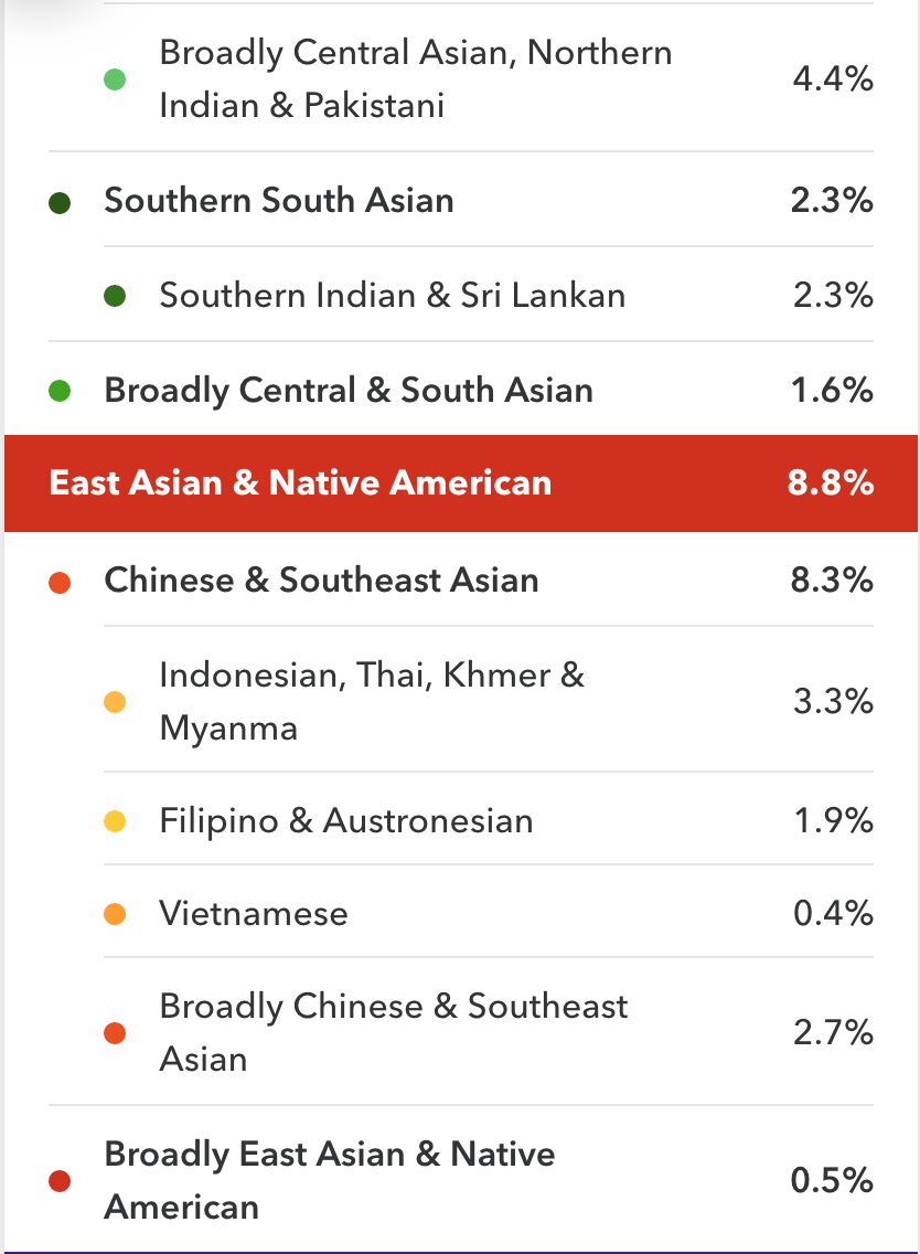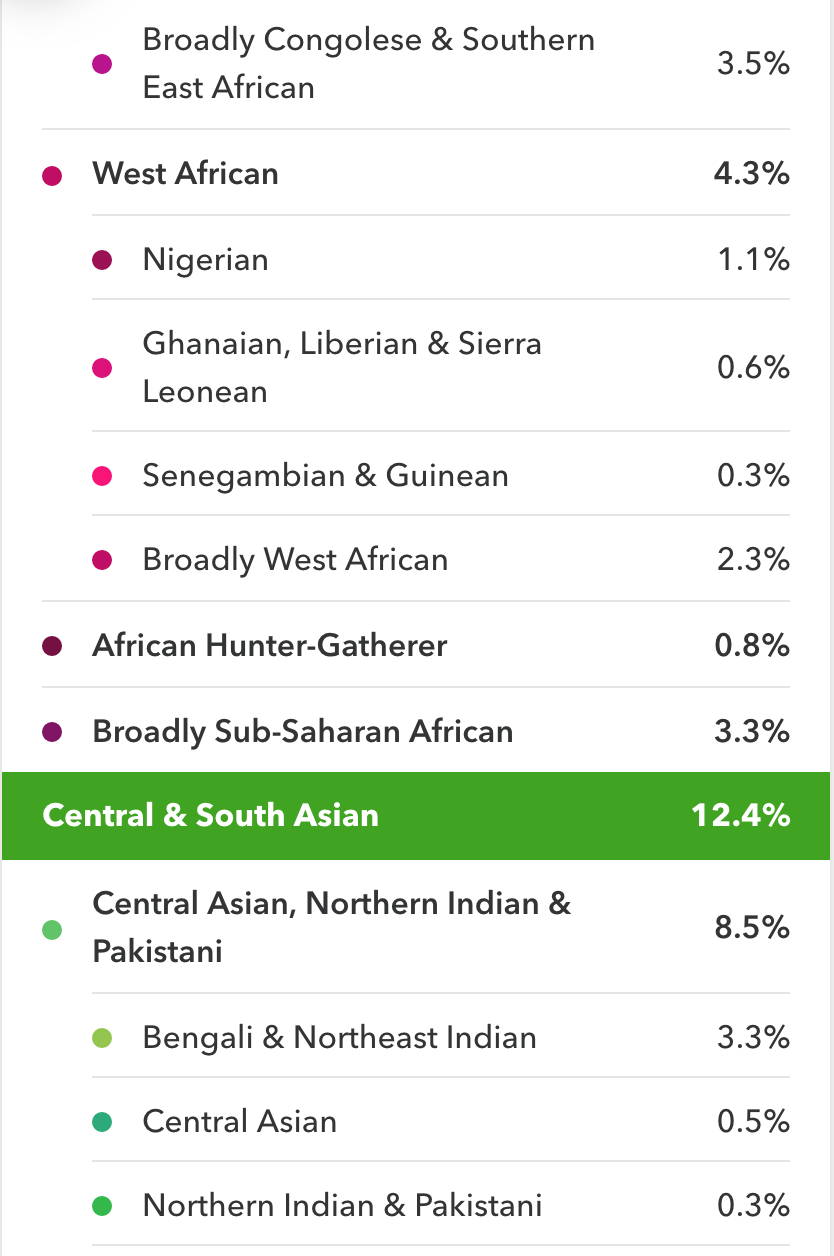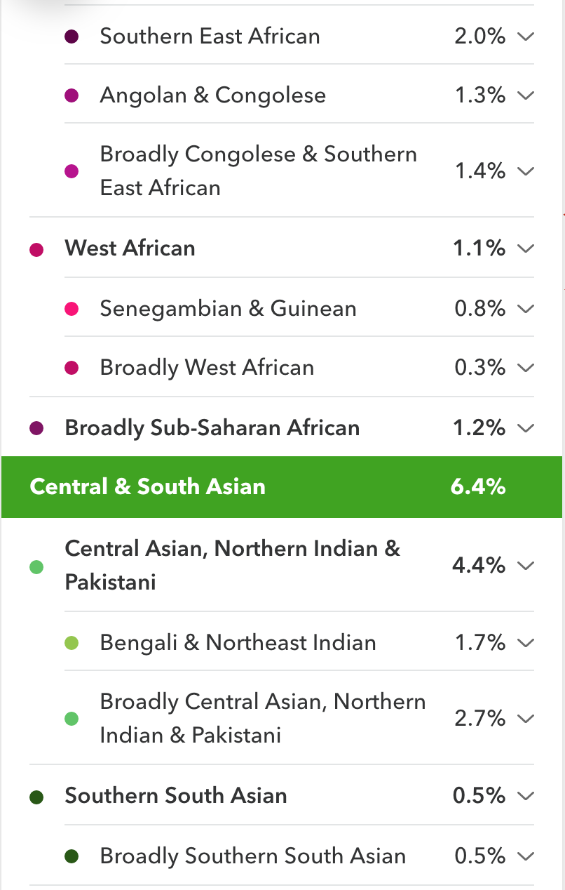 Finally an Indo-Mauritian with what looks like some more distant English, Chinese and African ancestry