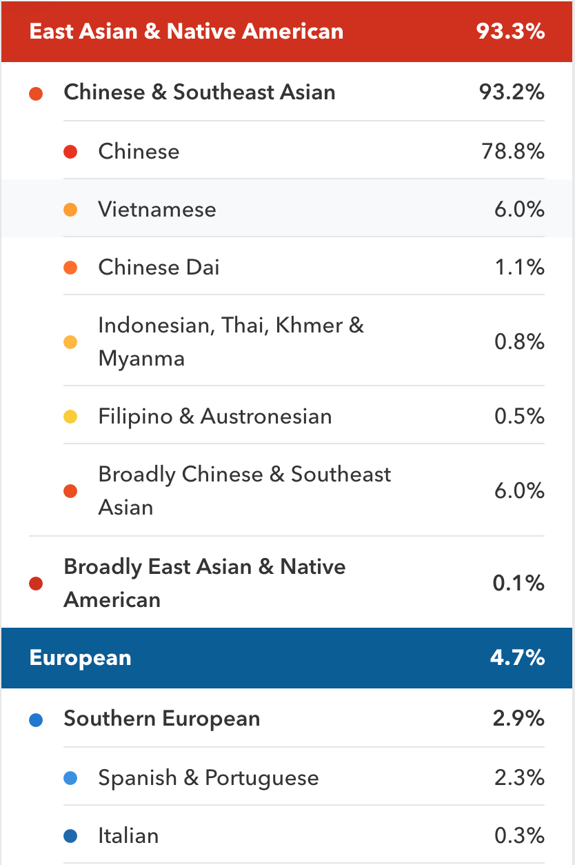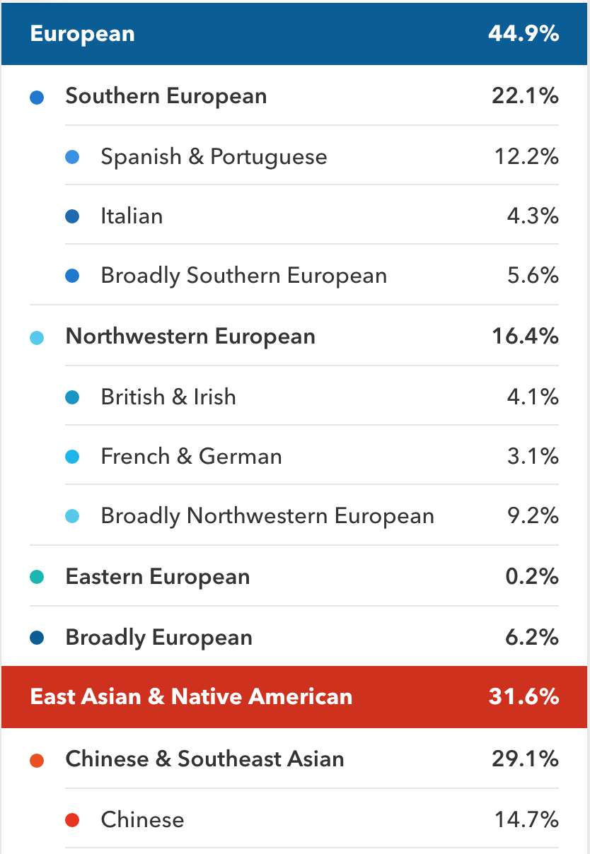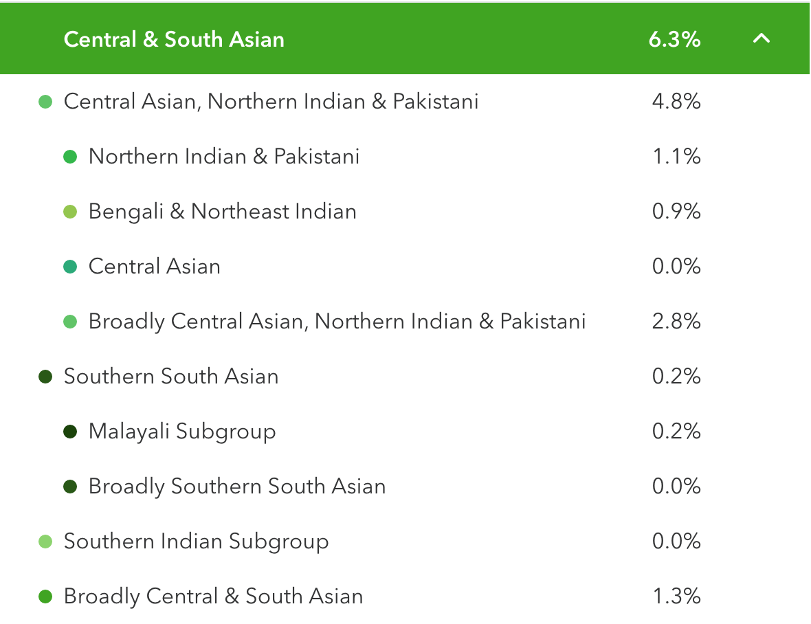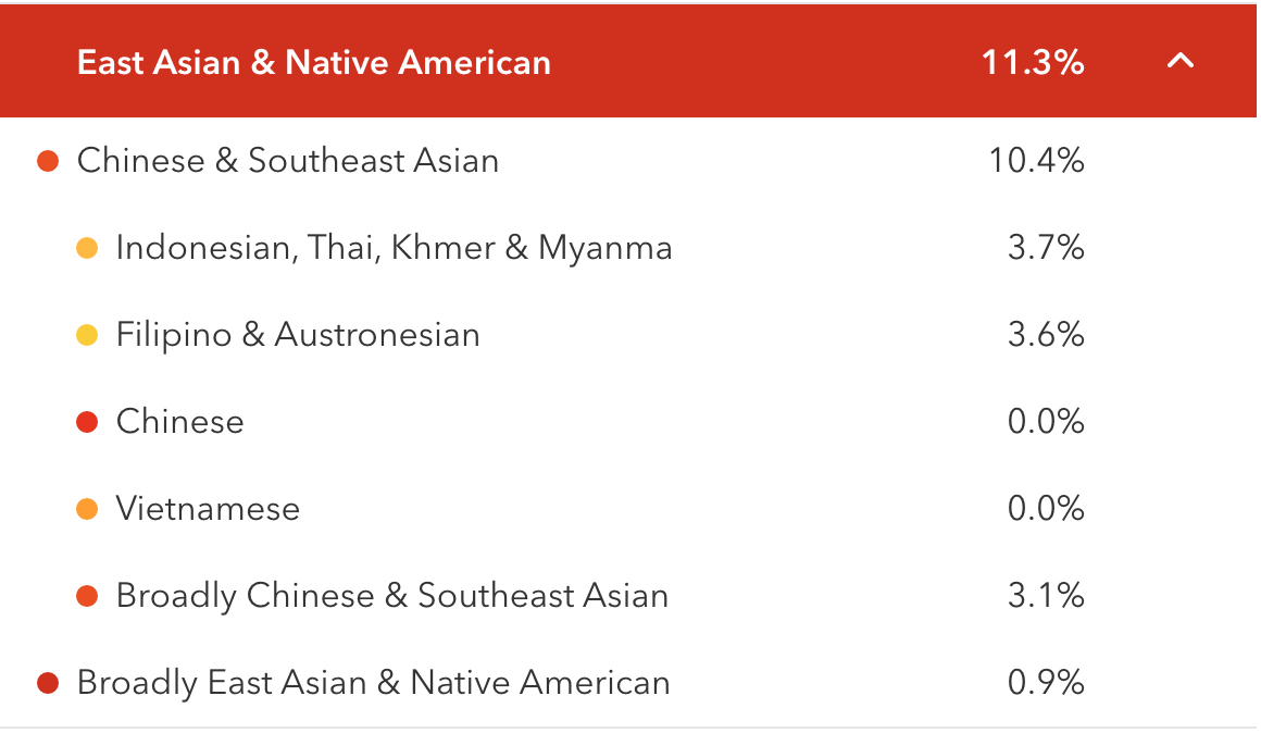 Finally an Indo-Mauritian with what looks like some more distant English, Chinese and African ancestry