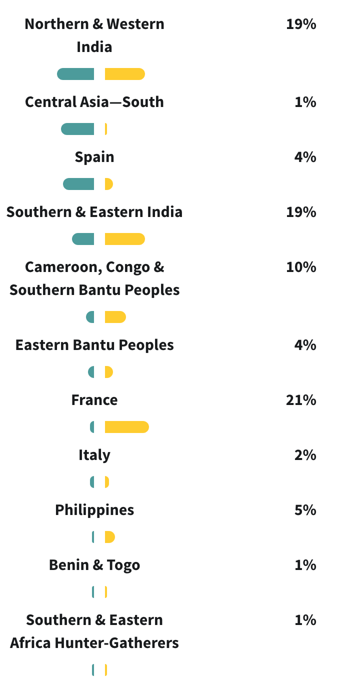 - Some 70% of Mauritians are of fully Indian descent. (Surprisingly, I have literally 0 fully South Asian Mauritian DNA relatives on 23andMe)